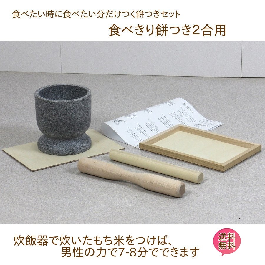 ミニ 餅つき セット 食べ切り 2合用 みかげ石 【実演DVD・説明書付き】 つきたて 炊飯器 お餅 餅つき 杵 ミニ臼