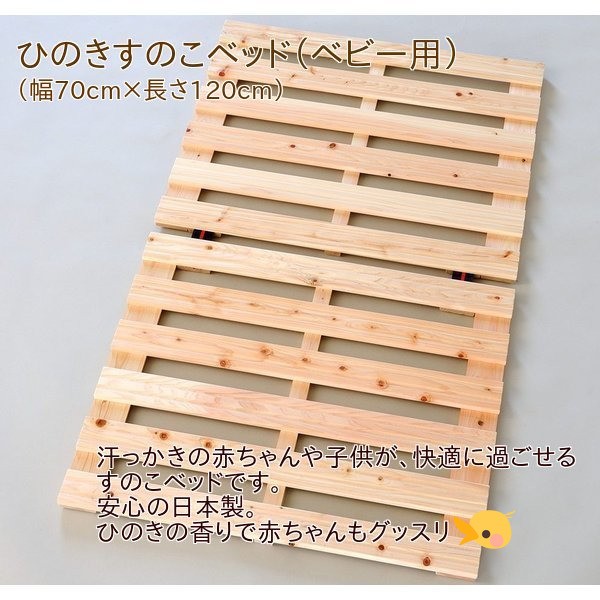 国産 ひのき すのこベッド ベビー用 70cm×120cm 二ツ折り ヒノキ ベビー 寝具 すのこマット 日本製
