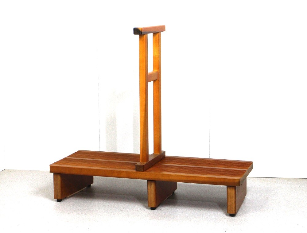 玄関踏み台 木製 玄関台 踏み台 90cm 昇降補助台 歩行補助 ポプラ製 足裏爽やか厚板玄関台 90cm幅 ギザギザ健康足踏み仕上げ 【木製手すり付き・中央タイプ】