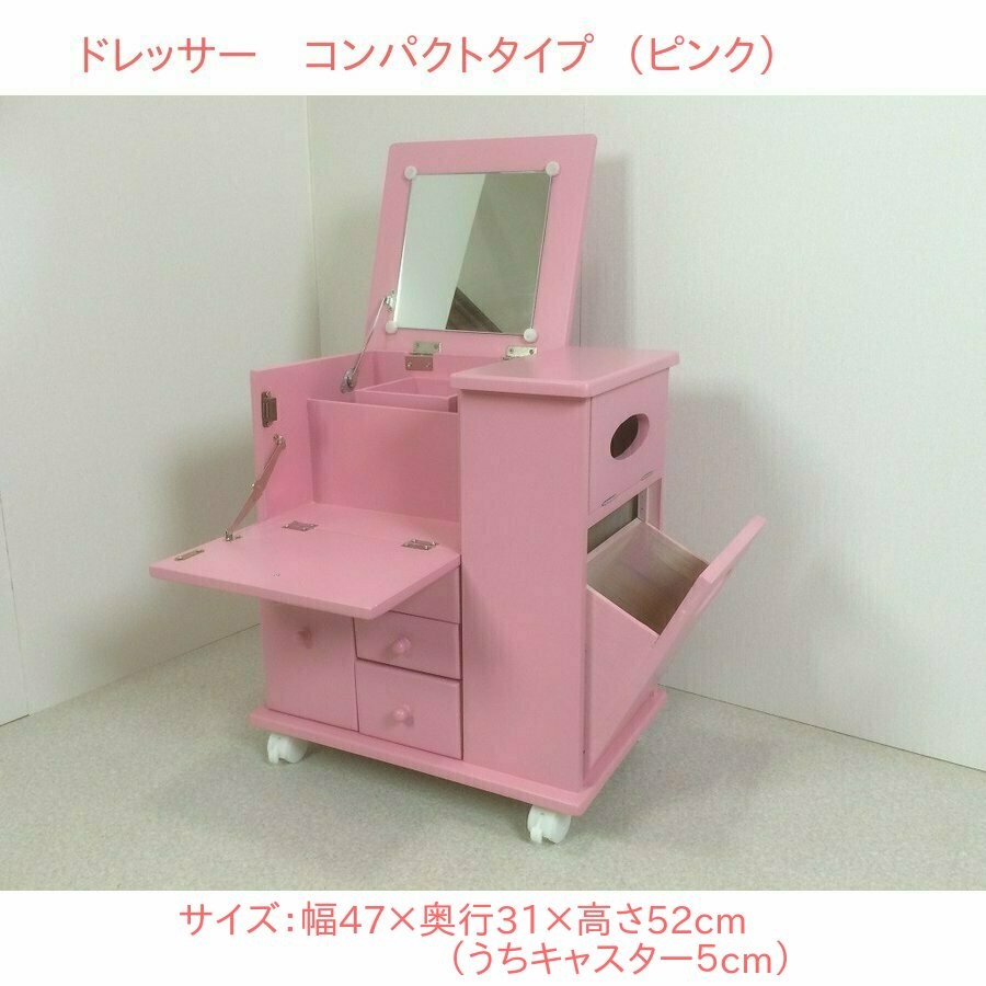 ドレッサー ピンク 姫系 安い コンパクト メイク 収納 メイク台 鏡台 化粧台 可愛い ミニ 木製 キャスターつき 送料無料 完成品