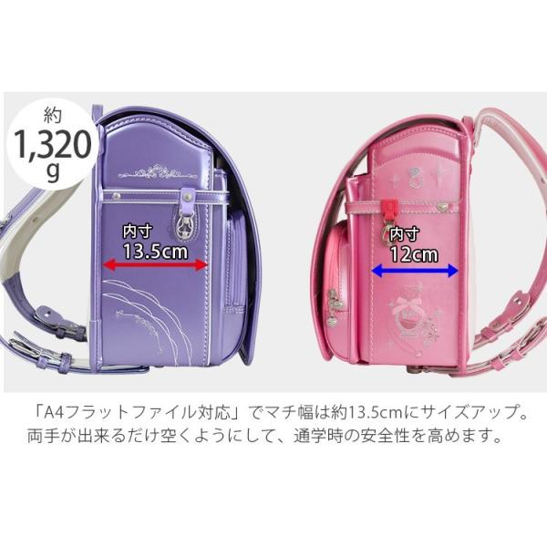 ★仕様紹介品番:1KR0734K カラー:パールピンク(360)/パールサックス(760)/パールラベンダー(820) 素材:かぶせ:クラリーノレミニカ(人工皮革)背裏:クラリーノ シロ(人工皮革) 重量:約1,320g サイズ:内寸:縦31×横23×マチ13.5(cm) ※A4フラットファイルサイズ、ワイドマチ背カン:デルタキャッチその他機能:反射材「超ピカ」(かぶせ三方、大マチ、マチベルト、肩ベルト)/ワイドポケット/くるピタ錠前/安全ナスカン/持ち手付き