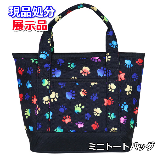 ◎送料無料 現品処分 サンプル品 ミニトートバッグ ゴルフ 肉球 足跡 アニマル カラフル ブラック おしゃれ ファスナー付き アウトレット lout-mt237