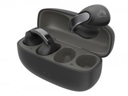 ■ 耳をふさがないイヤーカフタイプの完全ワイヤレスイヤホン。装着しやすいフレキシブルアジャストで、軽く快適な着け心地。