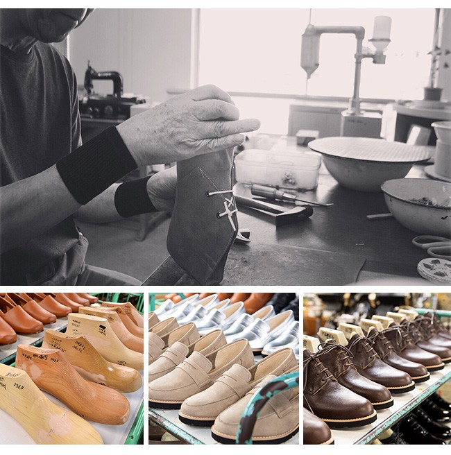 ■この製品は天然皮革を使用し、一足一足手作りで生産しておりますので、左右の仕上がりやハンドステッチに