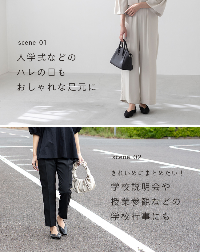 ぺたんこ×きれい見えだから、普段使い〜参観日や卒入学など、どんなシーンでも品よくおしゃれに。
