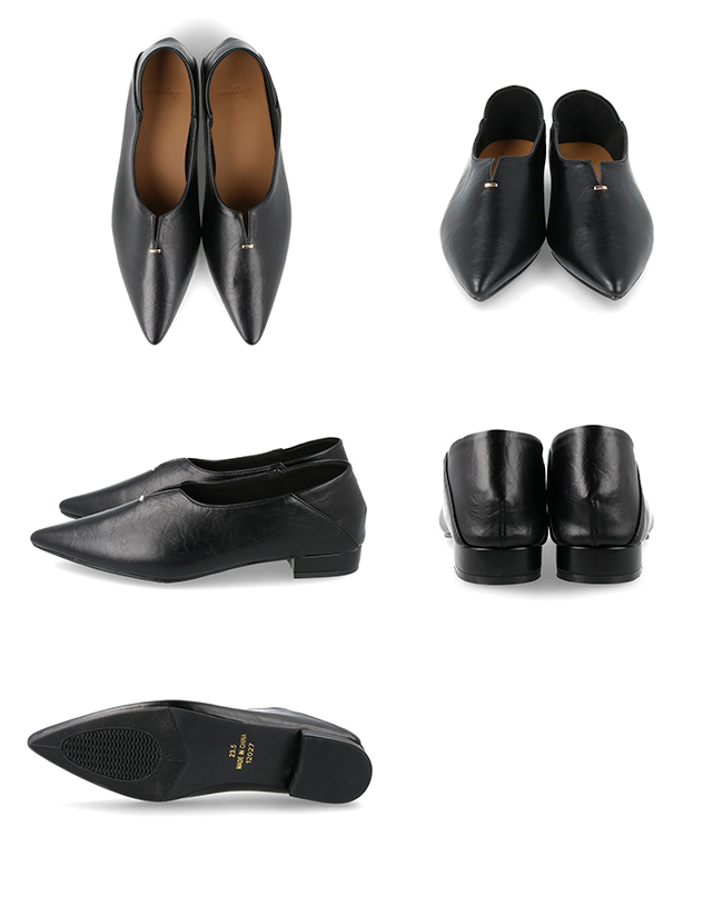 すっきり見えのポインテッドに肌見せスリットとゴールドモチーフがきらりと映えて、大人の足元に華やぎを。