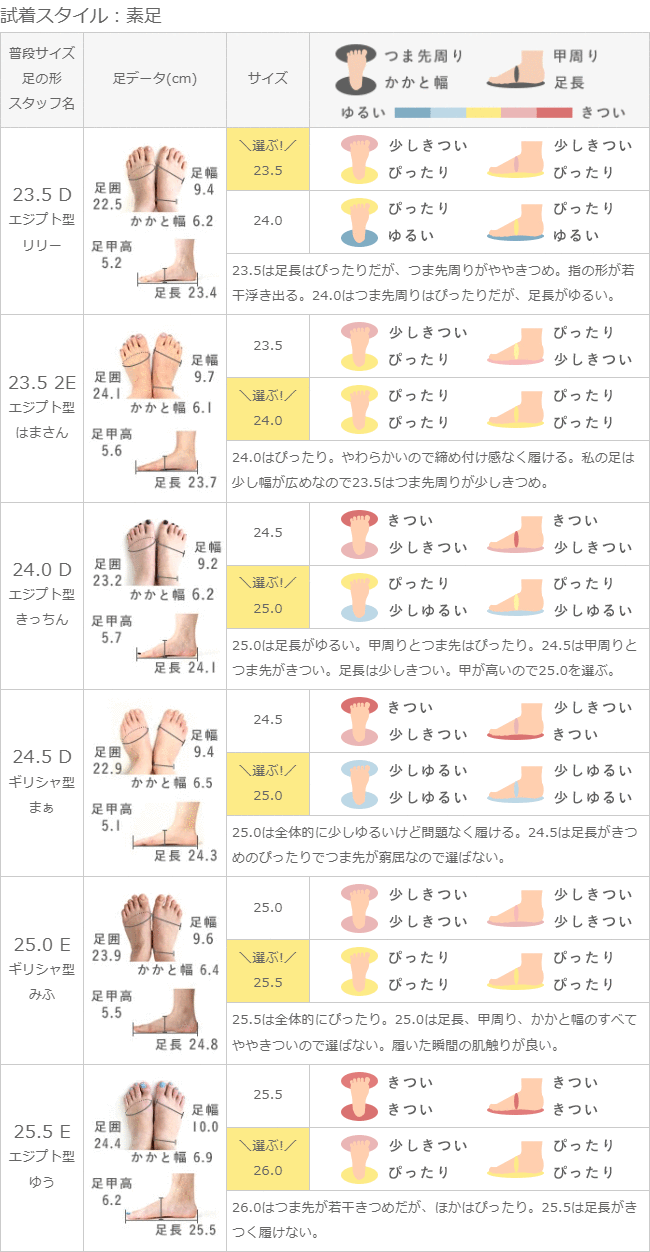※足の形には個人差があります。スタッフ試着感想は参考程度にお考え下さい。