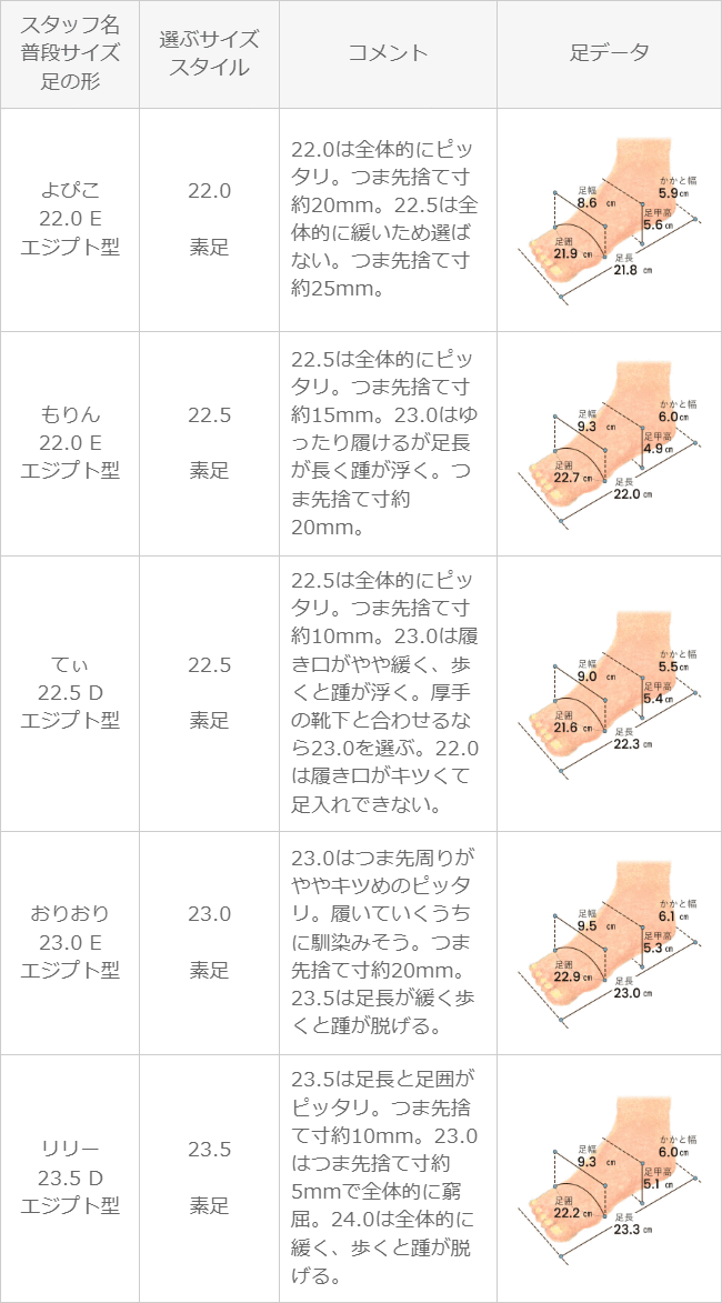 ※足の形には個人差があります。スタッフ試着感想は参考程度にお考え下さい。