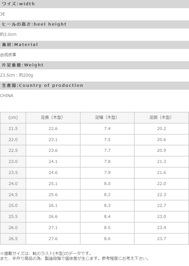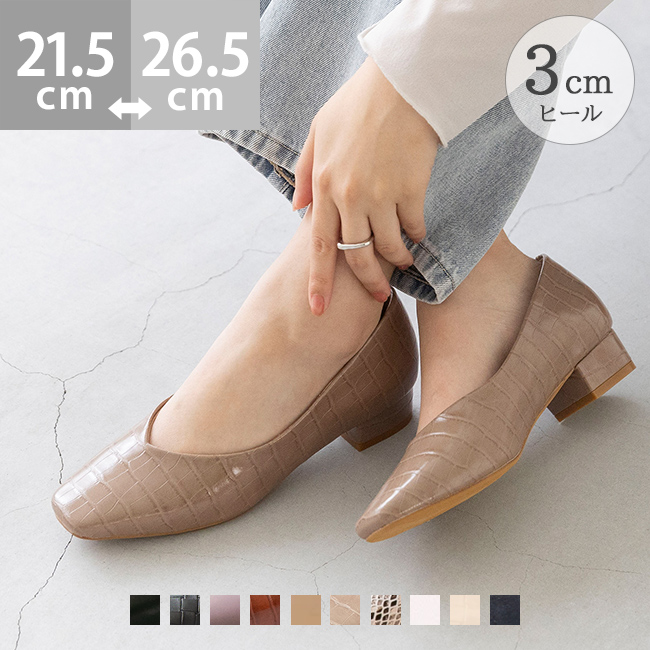 高すぎず低すぎない、丁度良い高さの3cmヒール。太ヒールで歩きやすさも◎