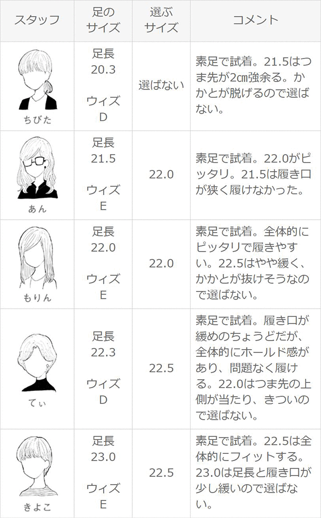 ※足の形には個人差があります。スタッフ試着感想は参考程度にお考え下さい。