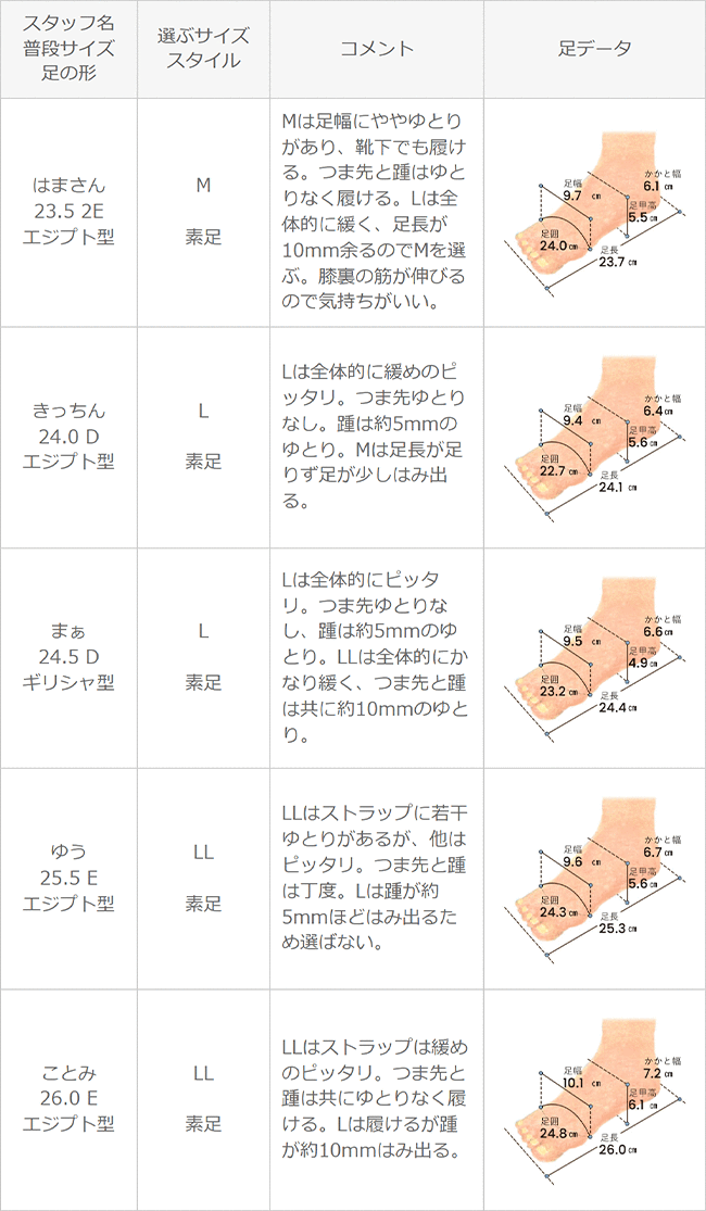 ※足の形には個人差があります。スタッフ試着感想は参考程度にお考え下さい。