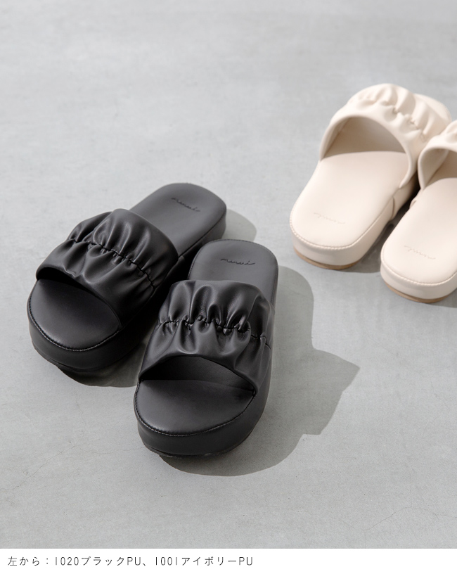 サンダル レディース ラウンドトゥ ラウンド スリッパ つっかけ トレーニングサンダル 健康サンダル 体幹シューズ 傾斜ソール ななめソール 姿勢改善 体幹 ながら シェイプアップ 筋トレ 健康 身体づくり ギャザー フラットヒール フラット フラットソール ぺたんこ 厚底 ボリュームソール ラウンドヒール やわらかい 柔らかい すべりにくい 痛くない 歩きやすい 疲れない 疲れにくい 大きいサイズ 小さいサイズ おでかけ お出かけ カフェ ショッピング 買い物 お散歩 ワンマイル 散歩 デイリー 日常 普段使い 日常使い 普通履き オフィス履き替え 3.5cmヒール 3.5センチヒール ミドルヒール E 白 ホワイト 黒 ブラック M 23cm 23.5cm 2L LL 25cm 25.5cm L 24.cm 24.5cm 春 夏 スムース調 合皮 PU menue メヌエ outletshoes アウトレットシューズ welleg ウェレッグ