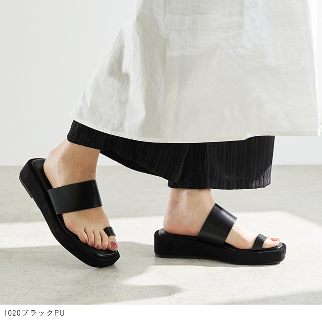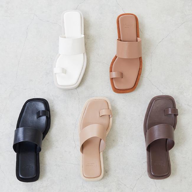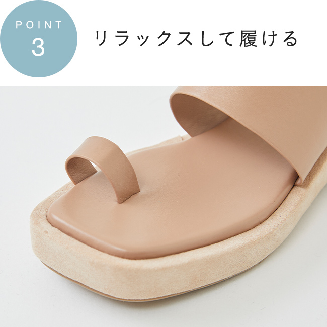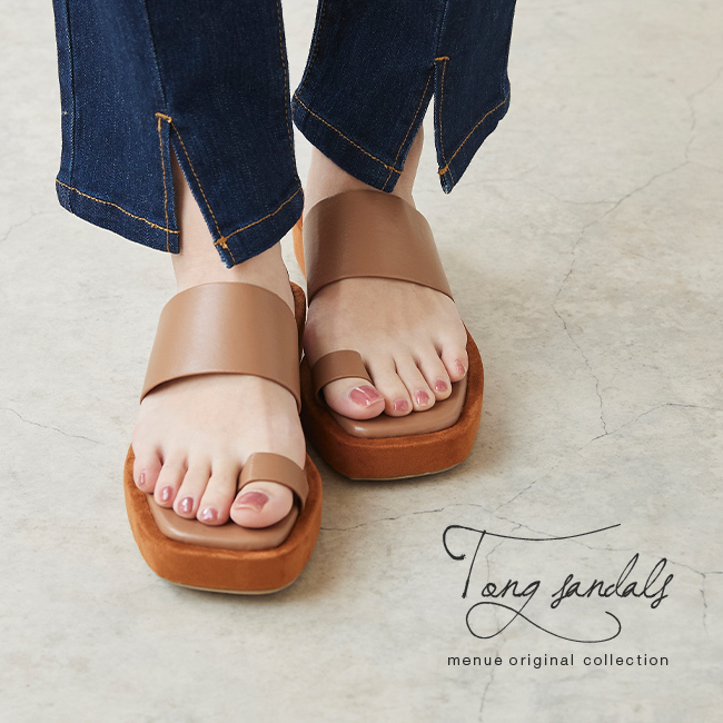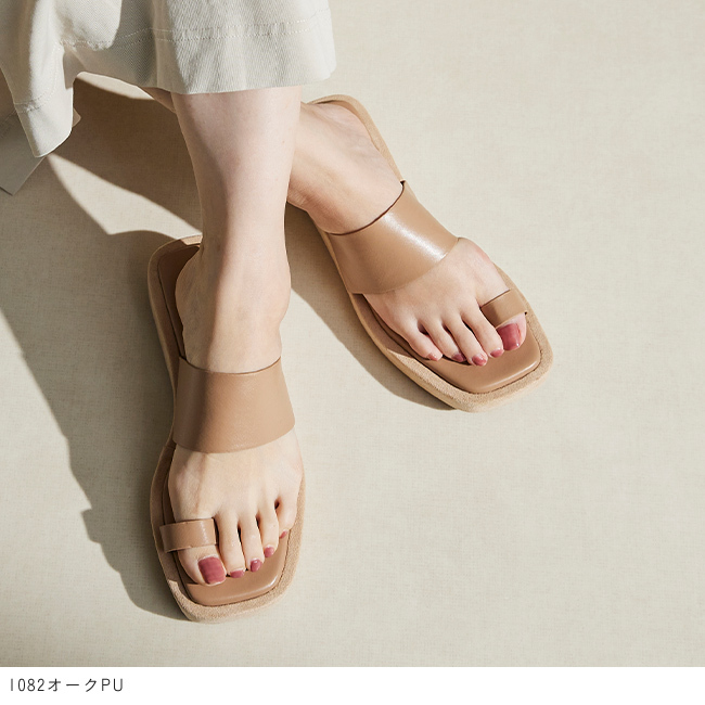 トレンドのスクエアトゥと足当たりのいい親指トングで大人な足元に