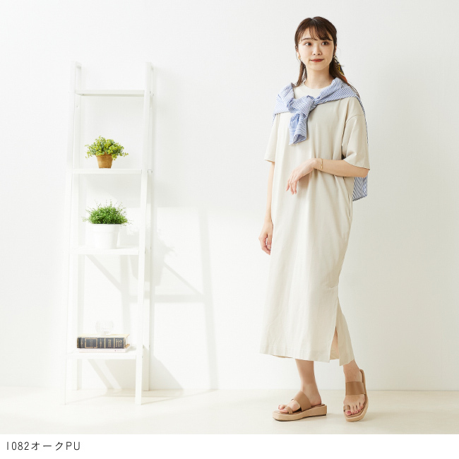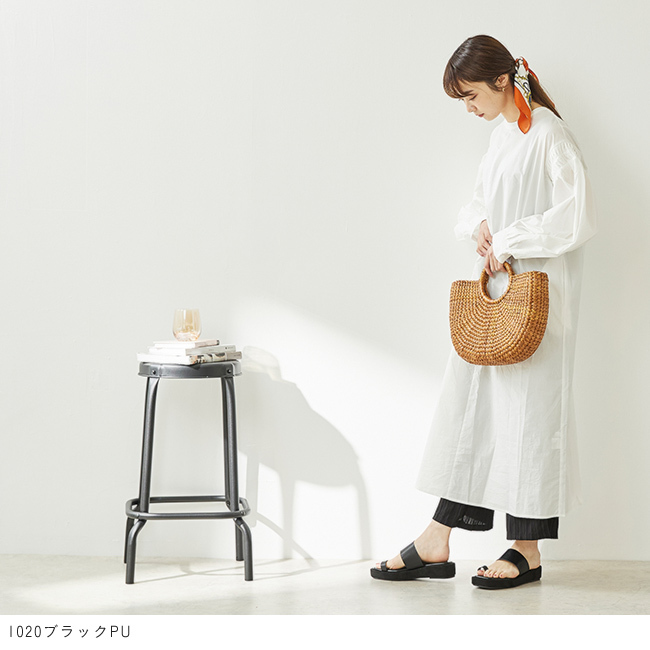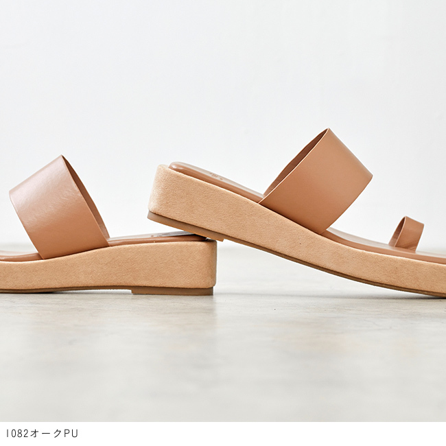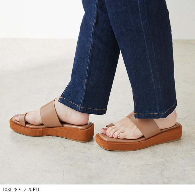 シンプルなデザインでありながらプラットフォームをスエード素材で巻いているので見た目に高級感もあり、より大人感をプラス。