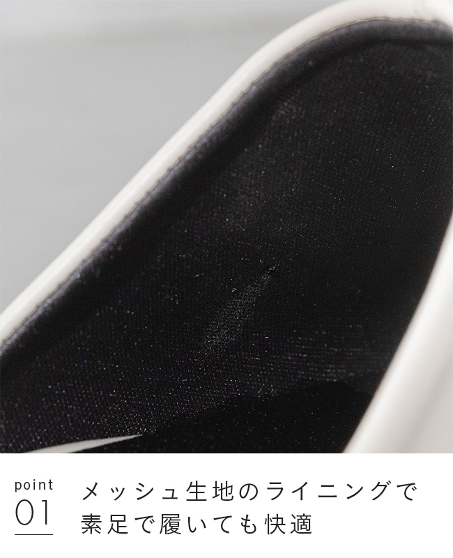 ライニング(内側の生地)にはメッシュ生地を使用。素足で履いてもさらさらで快適です。