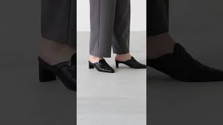 甲を深く覆うモードな雰囲気に履き口のカッティングがアクセントとなり、シルエットだけでも遊べるデザインに。