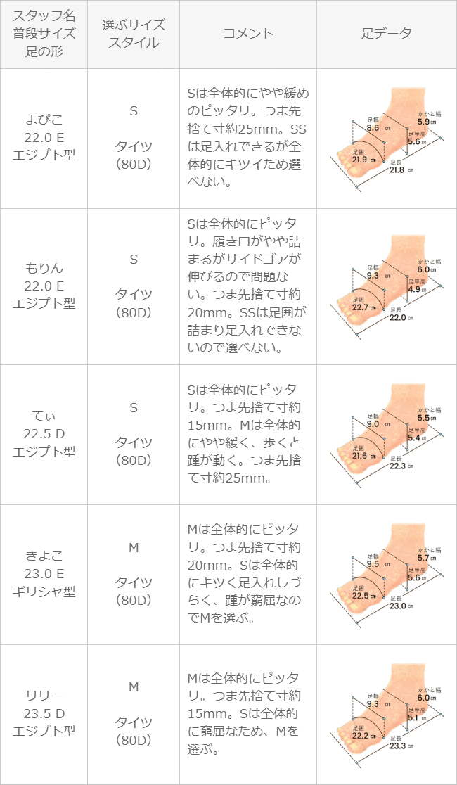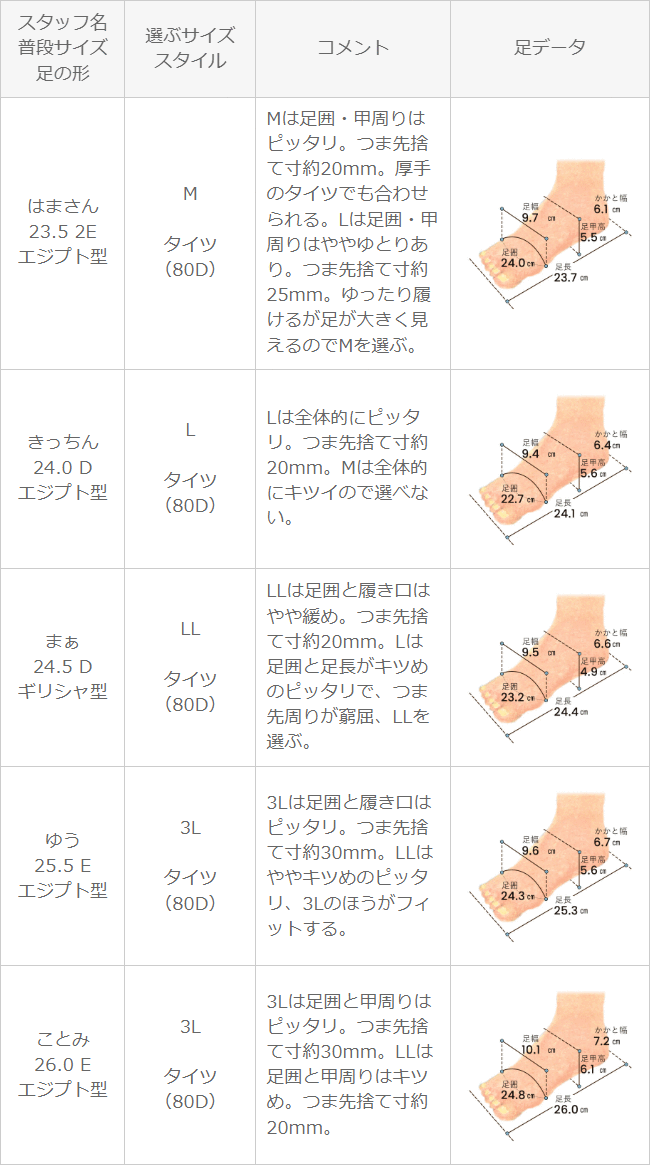 ※足の形には個人差があります。スタッフ試着感想は参考程度にお考え下さい。