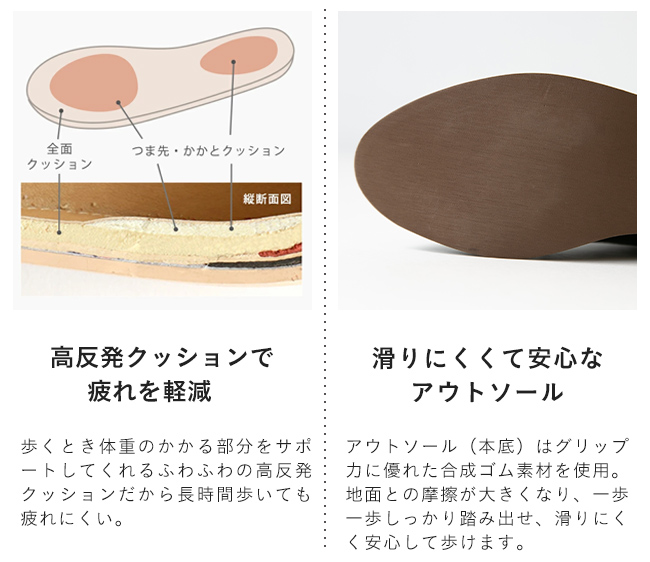 サイドにファスナーをつけることで、脱ぎ履きをスムーズに。
