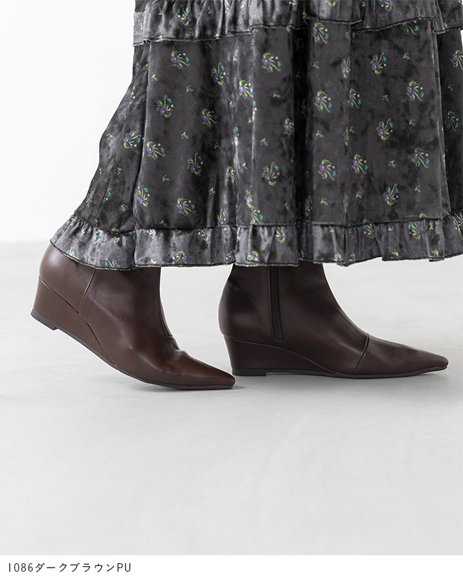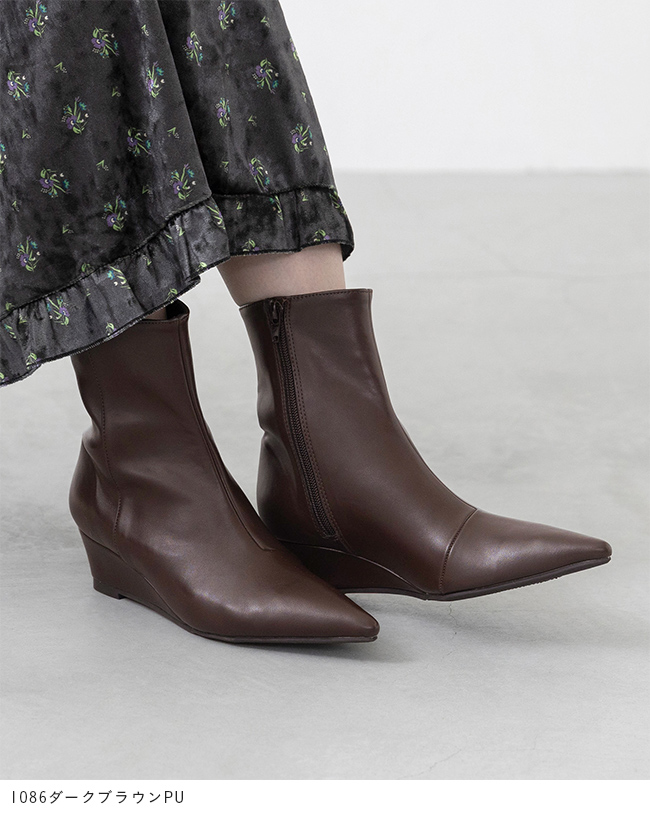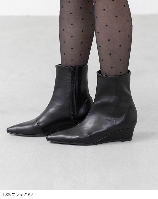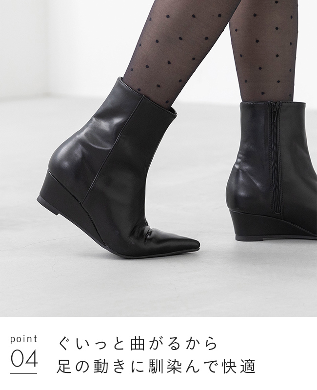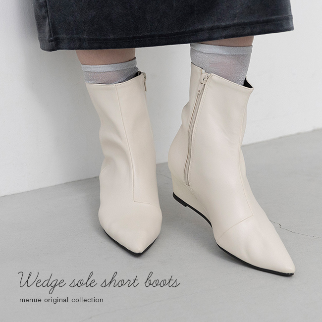 ブーツ ショートブーツ ミドルブーツ ショート ミドル レディース ポインテッドトゥ ポインテッド とんがりトゥ ウェッジソール ウエッジヒール サイドジップ サイドファスナー ウェッジ 巻きヒール 高反発クッション 高反発 クッション やわらかい 柔らかい 屈曲性 すべりにくい 痛くない 歩きやすい 疲れない 疲れにくい 大きいサイズ 小さいサイズ あったか 雪 雪の日 防寒 デート おでかけ お出かけ カフェ ショッピング 買い物 屋外 外履き デイリー 日常 普段使い 日常使い 普通履き 4.5cmヒール 4.5センチヒール ミドルヒール 2E 白 ホワイト 黒 ブラック 茶 ブラウン 2S SS 21cm 21.5cm S 22cm 22.5cm M 23cm 23.5cm 2L LL 25cm 25.5cm 3L LLL 26cm 26.5cm L 24cm 24.5cm 秋 冬 スムース調 合皮 PU menue メヌエ outletshoes アウトレットシューズ welleg ウェレッグ