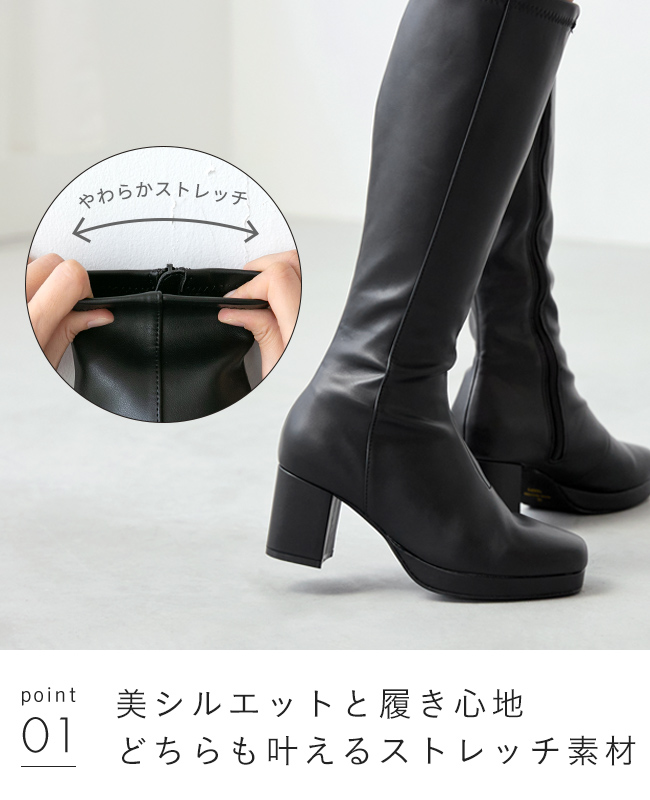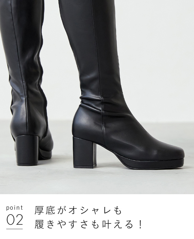 ブーツ ロングブーツ ロング ロング丈 膝下 レディース スクエアトゥ スクエア 厚底 厚底ブーツ チャンキーヒール 太ヒール チャンキー 太めヒール ヒール 高め 美脚 巻きヒール プラットフォーム プラットフォームヒール ごつめ 重ため ストーム ストームタイプ ストレッチ 高反発クッション 高反発 クッション 伸縮性 やわらかい 柔らかい すべりにくい 痛くない 歩きやすい 疲れない 疲れにくい 大きいサイズ 小さいサイズ あったか 雪 雪の日 防寒 デート おでかけ お出かけ カフェ ショッピング 買い物 屋外 外履き デイリー 日常 普段使い 日常使い 普通履き 6.5cmヒール 6.5センチヒール ミドルヒール 2E 白 ホワイト 黒 ブラック 2S SS 21cm 21.5cm S 22cm 22.5cm M 23cm 23.5cm 2L LL 25cm 25.5cm 3L LLL 26cm L 24.cm 24.5cm 秋 冬 スムース調 合皮 PU スエード調 クロス menue メヌエ outletshoes アウトレットシューズ welleg ウェレッグ
