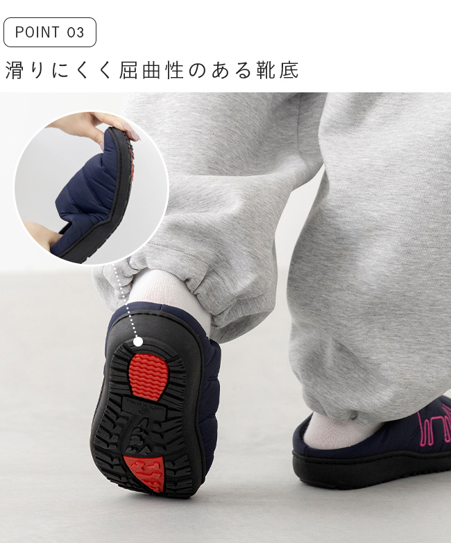 ライニング(内側の生地)と中敷きには毛足の短いファーが敷き詰められてあたたかく、サッと履いて寒さ対策できて◎