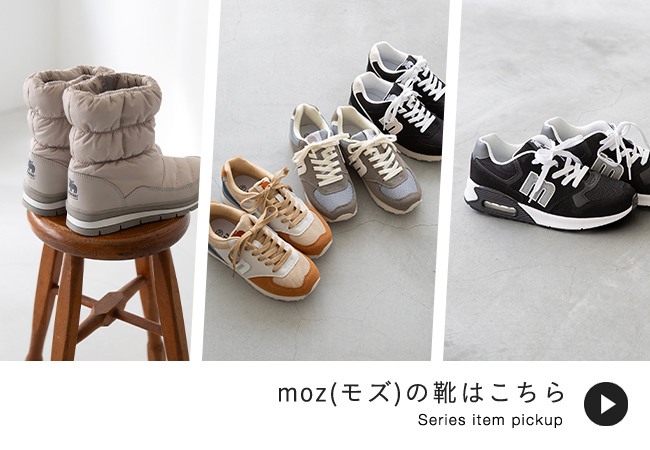 シンプルなフォルムにはmozのアイコンである『エルク』の刺繍があしらわれた遊び心のあるデザイン。