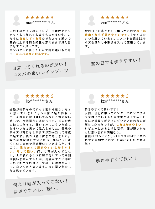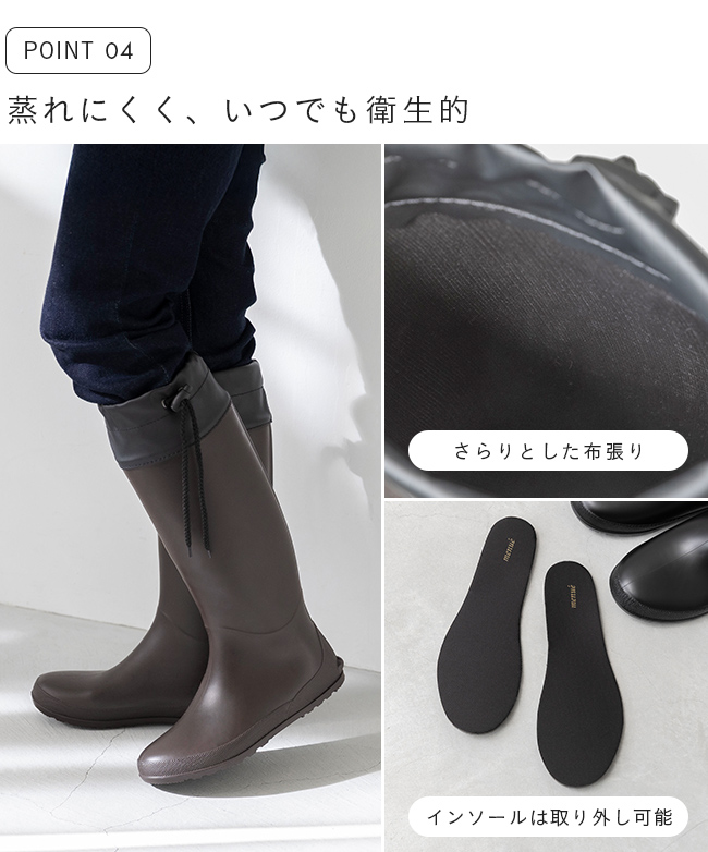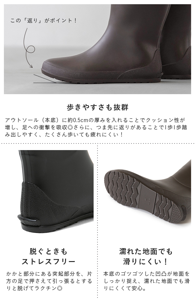 レインブーツ特有の肌にぺたぺたとくっつく感じもなく、蒸れにくいから不快感ゼロ!