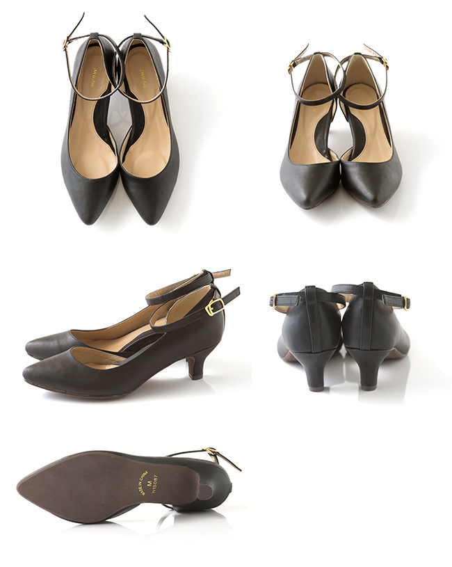 内側の土踏まず部分がオープンな、女性らしさたっぷりストラップパンプス。