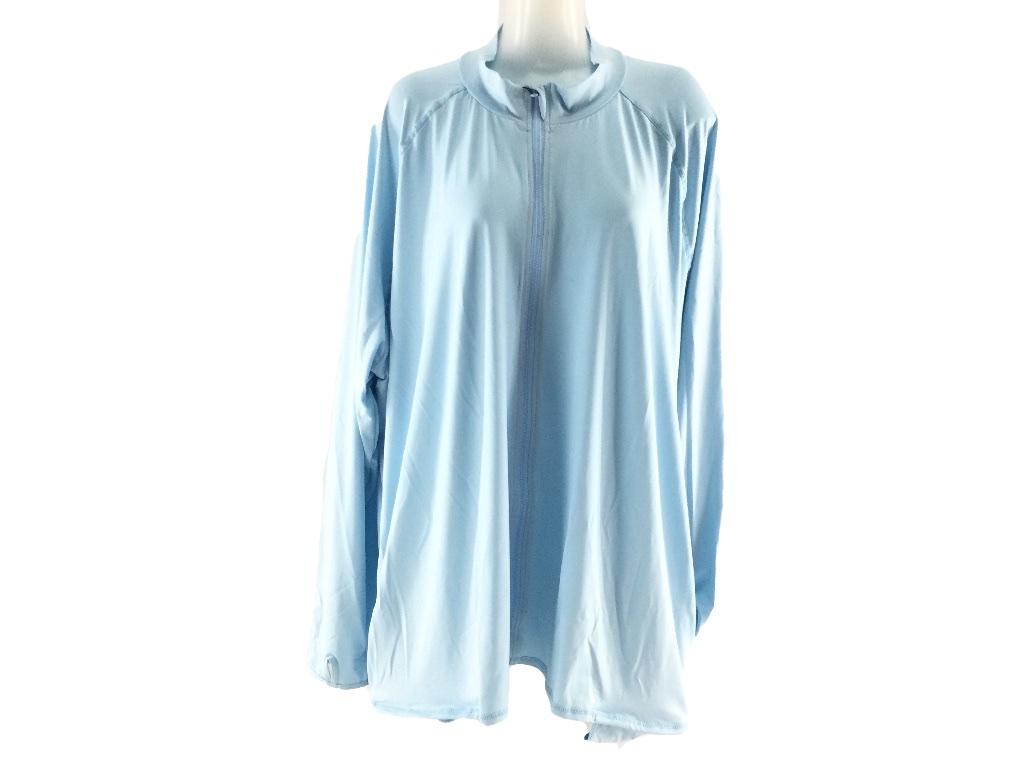 レディース水着 スタンドカラーラッシュガード 指穴付 UVカット 体型カバー 大きいサイズ 10L ブルー
