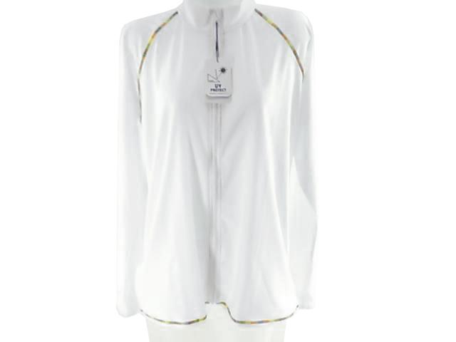 レインボーステッチがきれいなスタンドカラータイプのラッシュガード 。