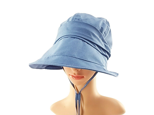 (1)小顔を演出…大きめつばとすっぽりかぶれるデザインで小顔を演出。