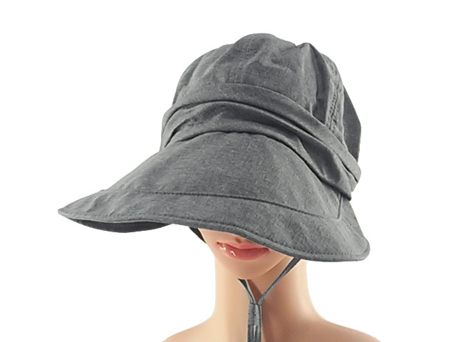 (1)小顔を演出…大きめつばとすっぽりかぶれるデザインで小顔を演出。