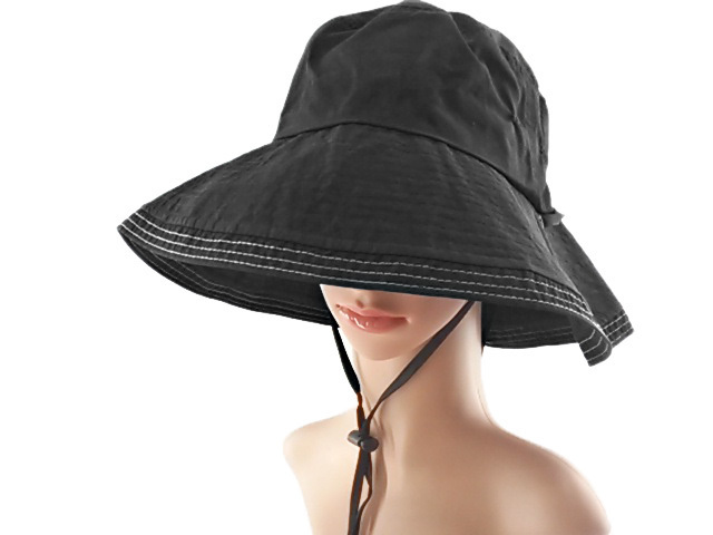 サファリ帽子 UV あご紐付き ツバ広 手洗いOK ブラック 送料250円