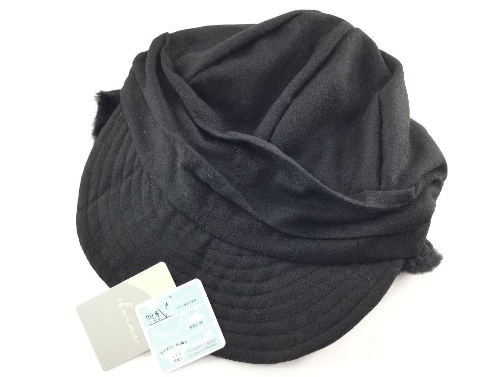 折返しイヤーカバー付 2WAYつば長キャスケットハット 紫外線カット機能付き Mサイズ ブラック 送料250円