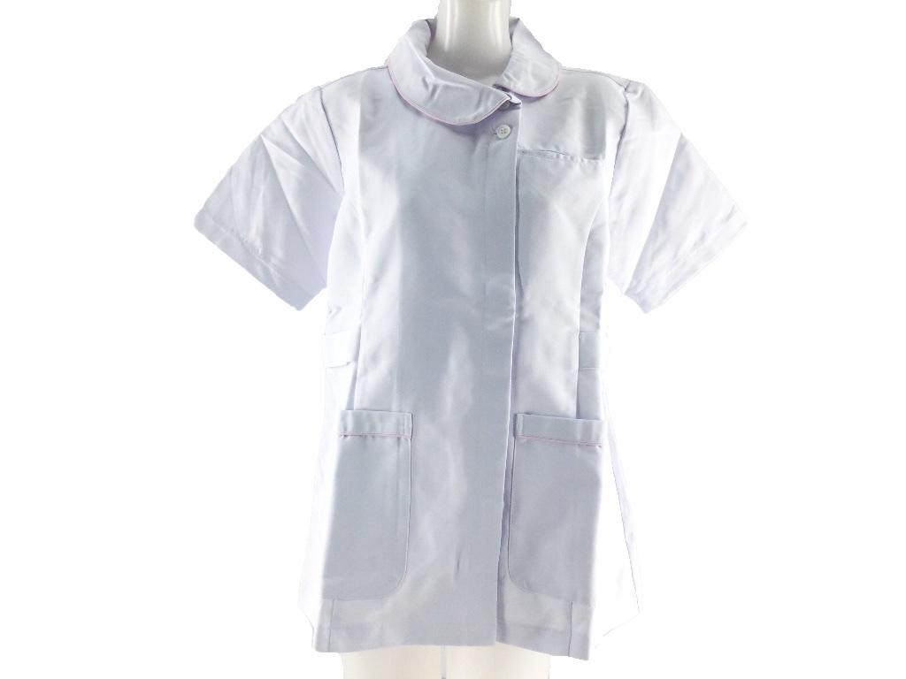アシンメトリー衿ジャケット ギャバ 看護師 介護士 LLサイズ ホワイトxピンク 送料250円