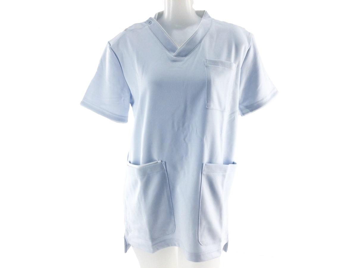 スクラブ パウダーストレッチ 肩スナップ 男女兼用 医療用 看護師 介護士 Lサイズ ライラックxホワイト 送料250円