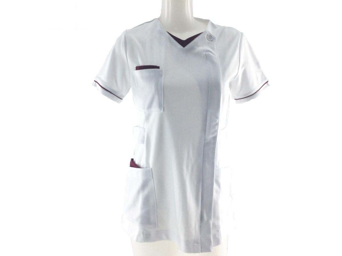 前開きジャケット ストレッチ 吸汗 レディース 医療用 看護師 介護士 M ホワイトxバーガンディー 送料250円