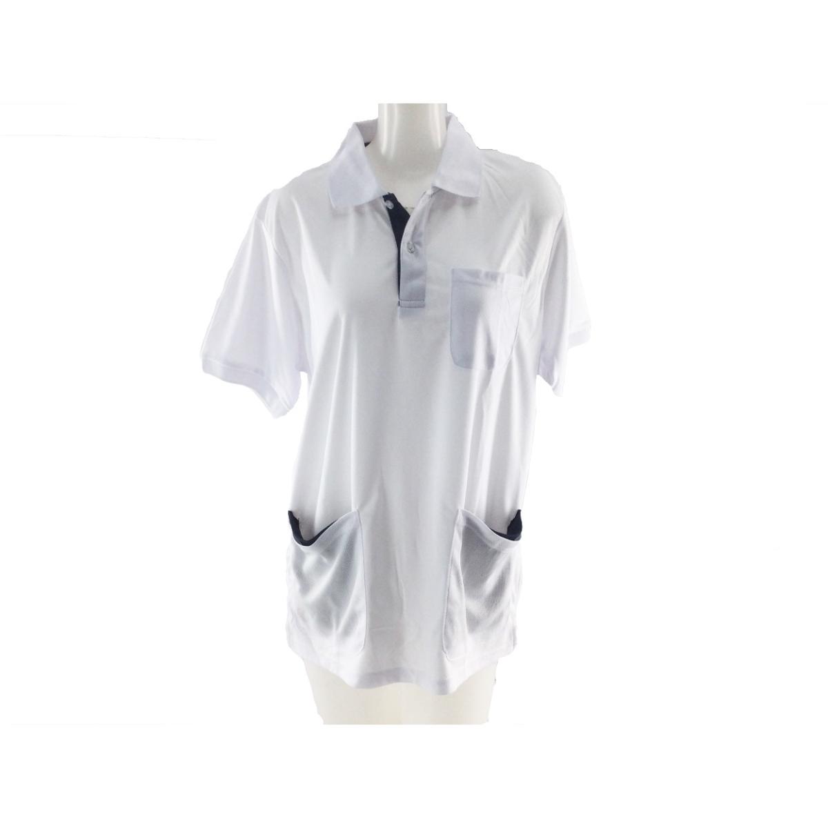 配色ポケットポロシャツ 男女兼用 吸汗速乾 涼しい シワになりにくい お洒落 実用性看護師 介護士 M ホワイト 送料250円