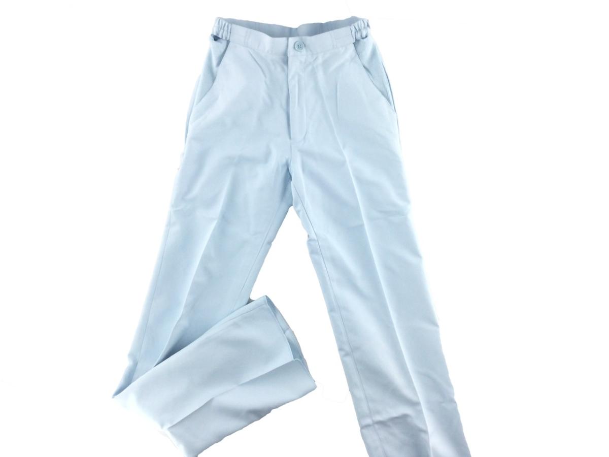 ストレートパンツ ギャバ リブ サイドゴム仕様 医療用 看護師 介護士 M サックス 送料250円