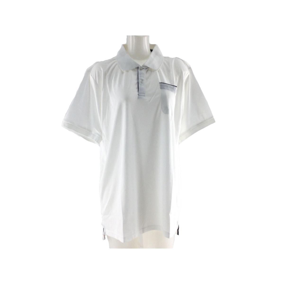 配色使いドライメッシュポロシャツ 男女兼用 L ホワイトxネイビー 送料250円