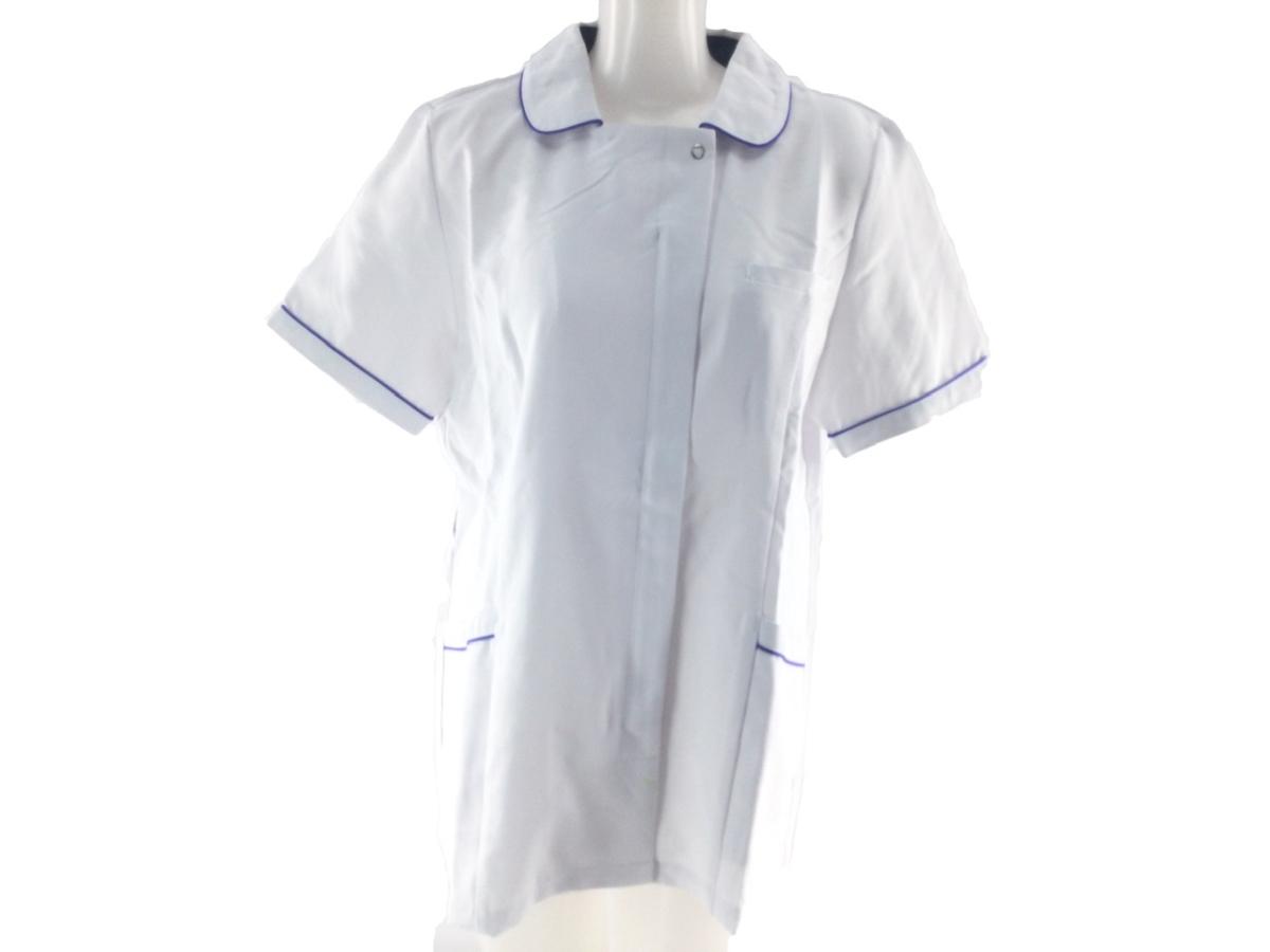 細パイピングジャケット V-CAT 帯電防止 UVカット ウィルス不活性化 抗菌 消臭 看護師 介護士 Lサイズ ホワイトxRブルー 送料250円