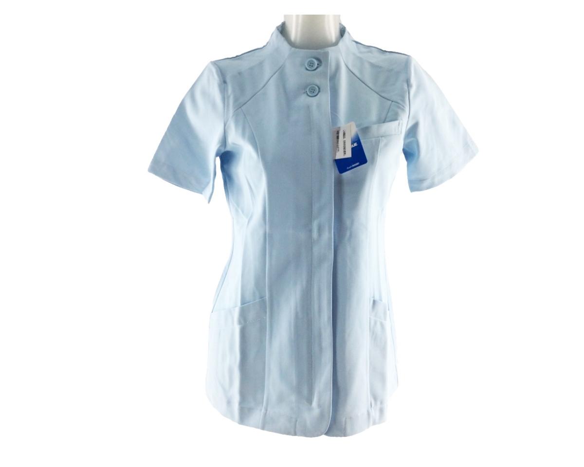 ノーカラー ジャケット ボトルネック 裏綿トリコット 制菌加工 看護師 介護士 Sサイズ サックス 送料250円