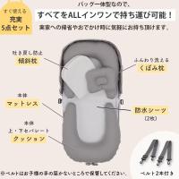 品質:【本体】側地=鞄部:ポリエステル100%、クッション・マット側地:ポリエステル100%、床面・枕・クッションカバー:綿100%、ベルト・取手:ポリプロピレン100%、詰め物=クッション中わた:ポリエステル100%、マット:ウレタンフォーム