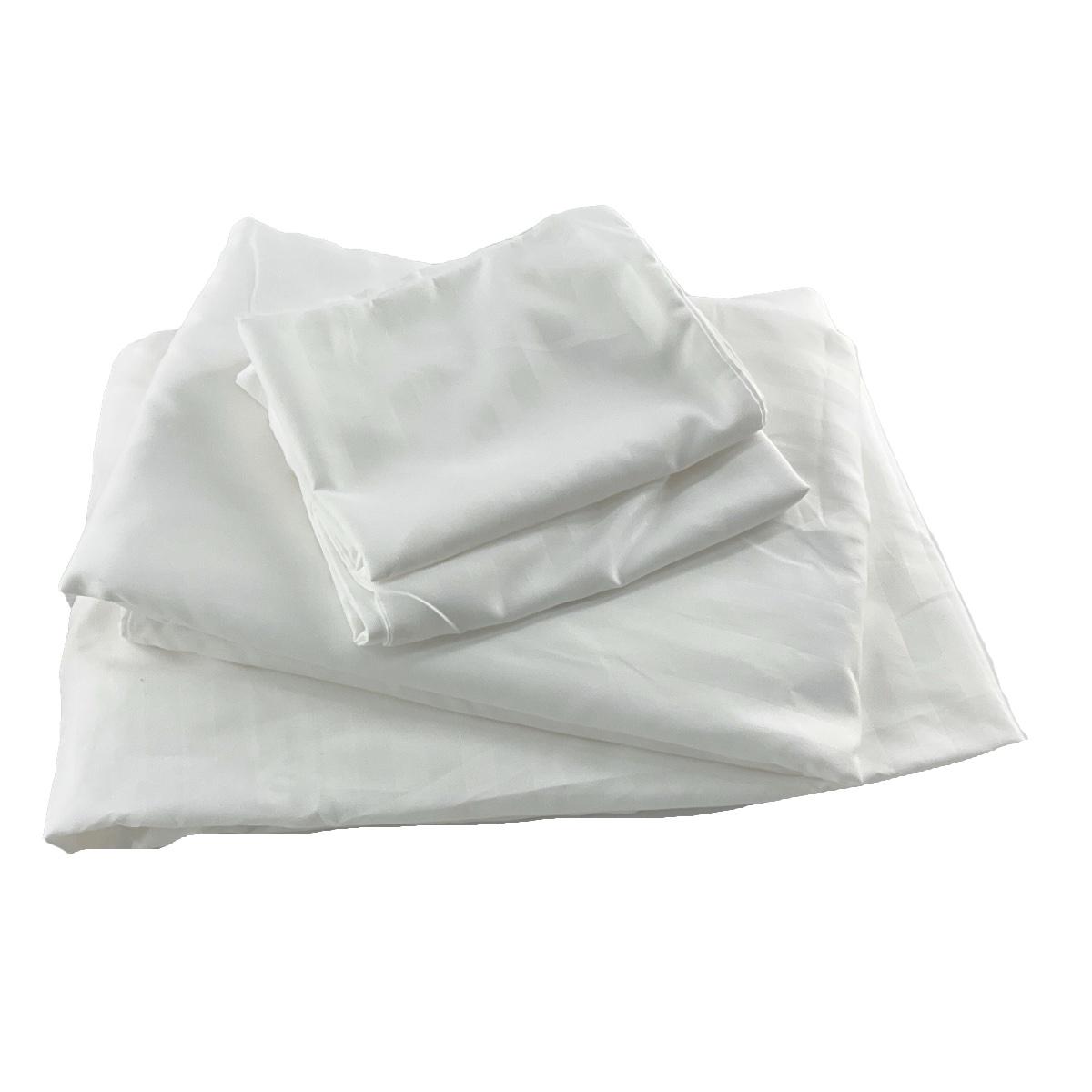 布団カバー 3点セット ホテルライクなサテン調 ダブルサイズ ストライプ柄 ホワイト