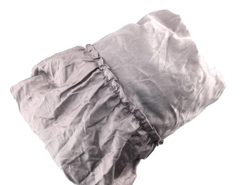 フリル付ベッドシーツ 高密度 綿100% サテン地 マットレス用 セミダブル 幅120x200x30cm ダマスク柄 ライラックグレー
