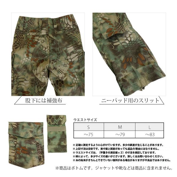 ■サイズ:SML (ウエストサイズ:S…〜75cm、M…〜79cm、L…〜83cm) ■カラー:MC マルチカム ※モニターにより、色味が若干異なって見える場合がございます。※個体差により数値に1〜2cmの誤差があります。 ※入荷時期により細部の色味や形状が異なる場合があります。