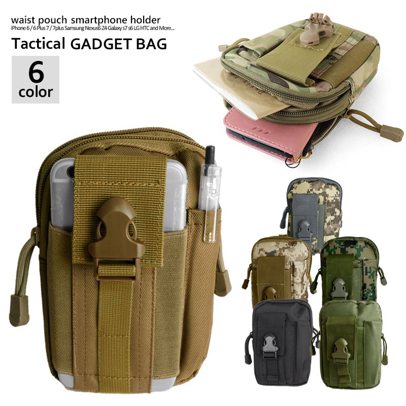 SHENKEL タクティカル ウエストポーチ Molle対応 ガジェットバッグ マルチコンパクト 6色(BK/OD/TAN/MC/ACU/PG/PB) 電話ホルスター スマホホルダー iPhone 6s plus 7plus