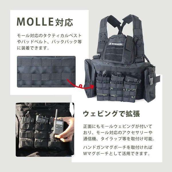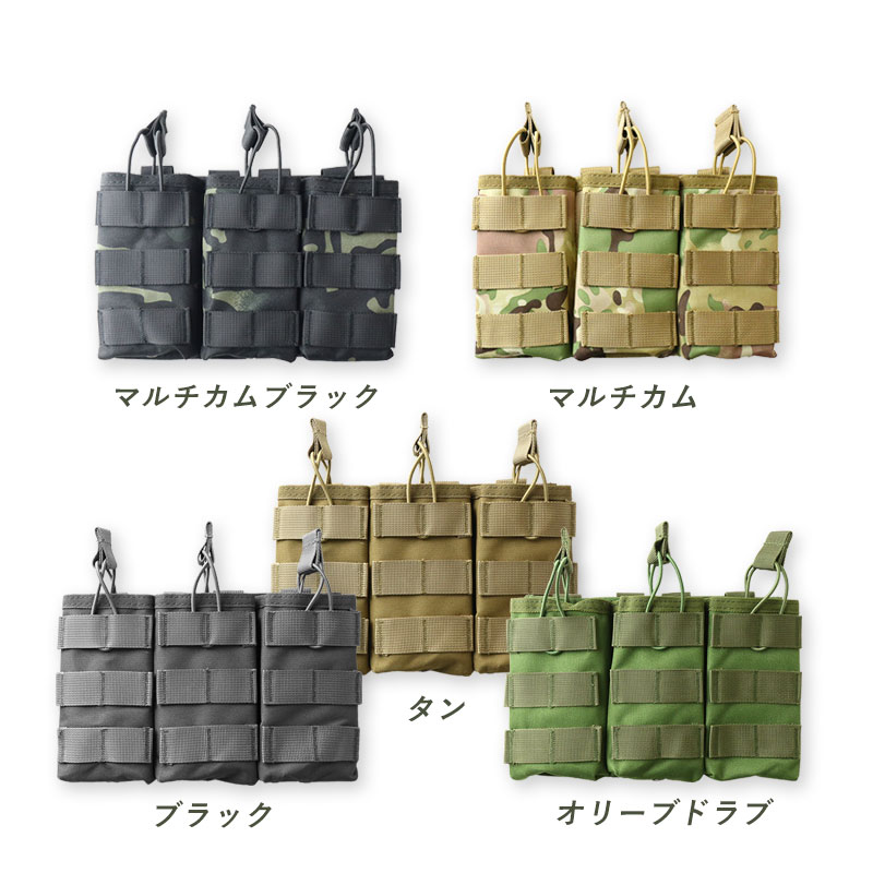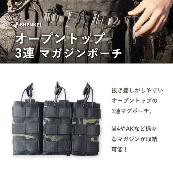 ≪関連ワード≫ シェンケル トリプル 3連 三連 オープントップ マガジンポーチ マグポーチ マガジン 弾倉ポーチ モール MOLLE Molle対応 M4 M16 AK AR G36 89式 HK417 チェストリグ取り付け サバゲー サバイバルゲーム ミリタリー 装備 サバゲー装備 5.56mm 9mm 迷彩 マルチカム マルチカムブラック ブラック 黒 OD オリーブドラブ 緑 TAN タン 茶