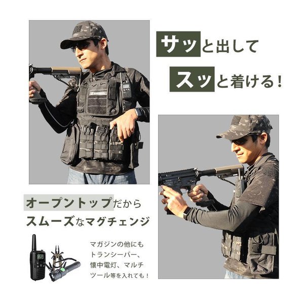 オープントップ式で取り出しやすい、3連マガジンポーチです。M4、M16、AK、AR、89マガジンなど大部分のマガジンを収納可能。