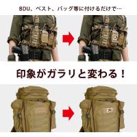 迷彩服やポーチ、バックなどの小物類のマジックテープ部に簡単に取り付けられます。